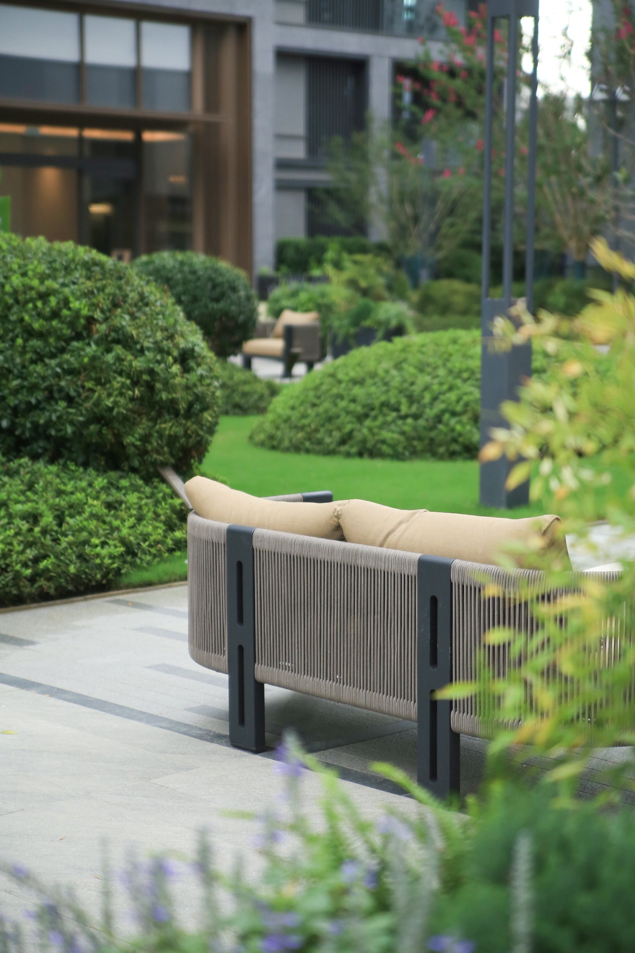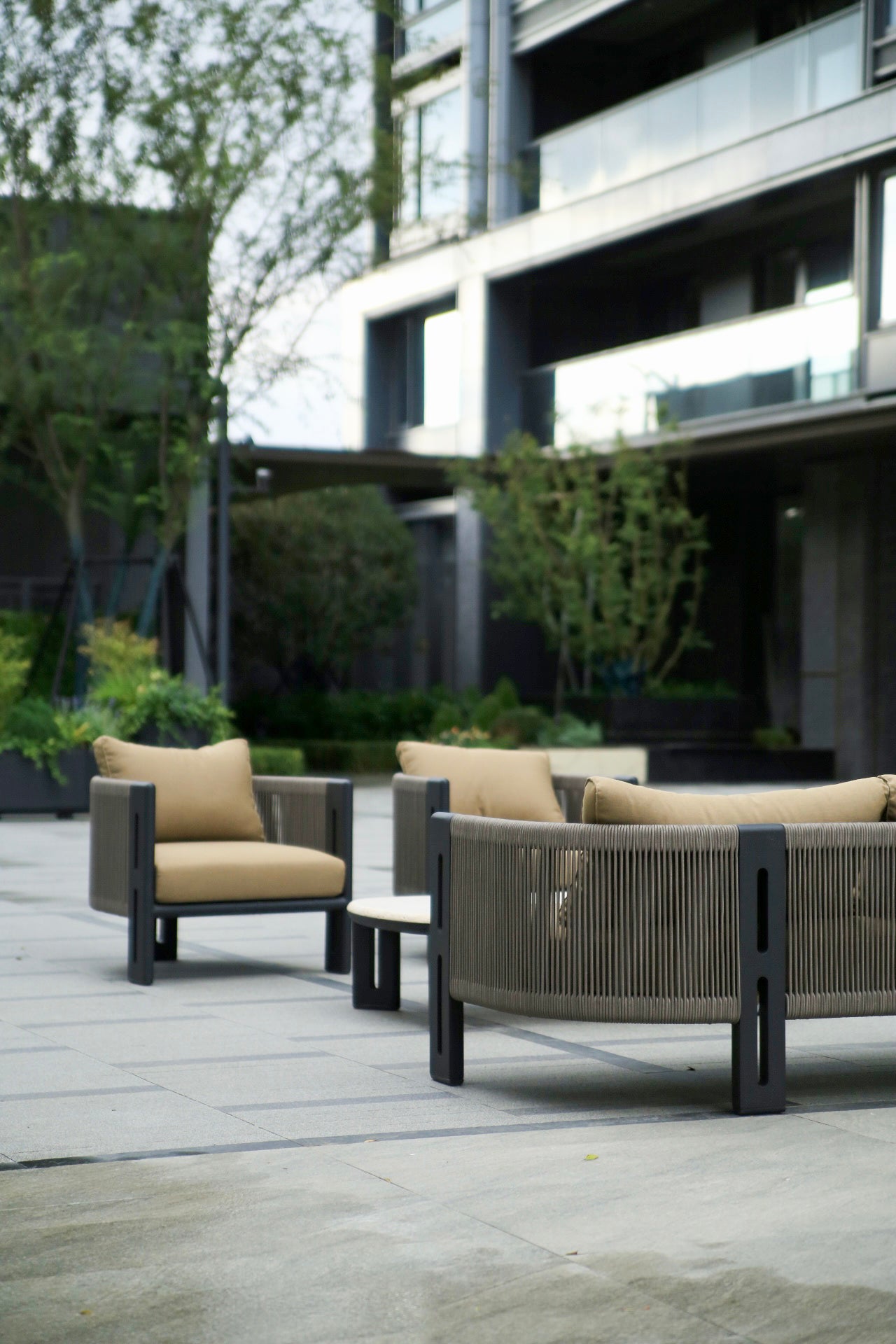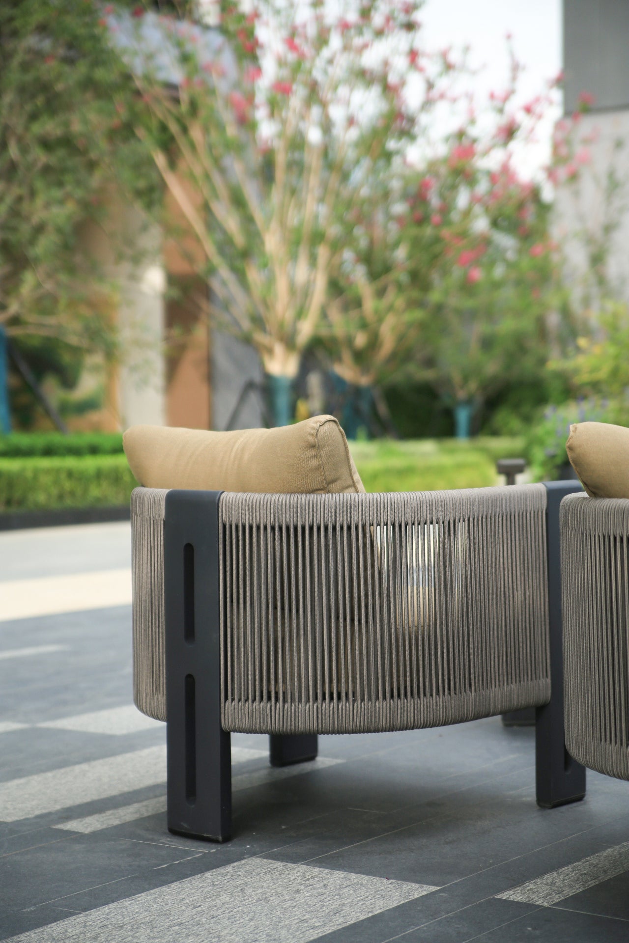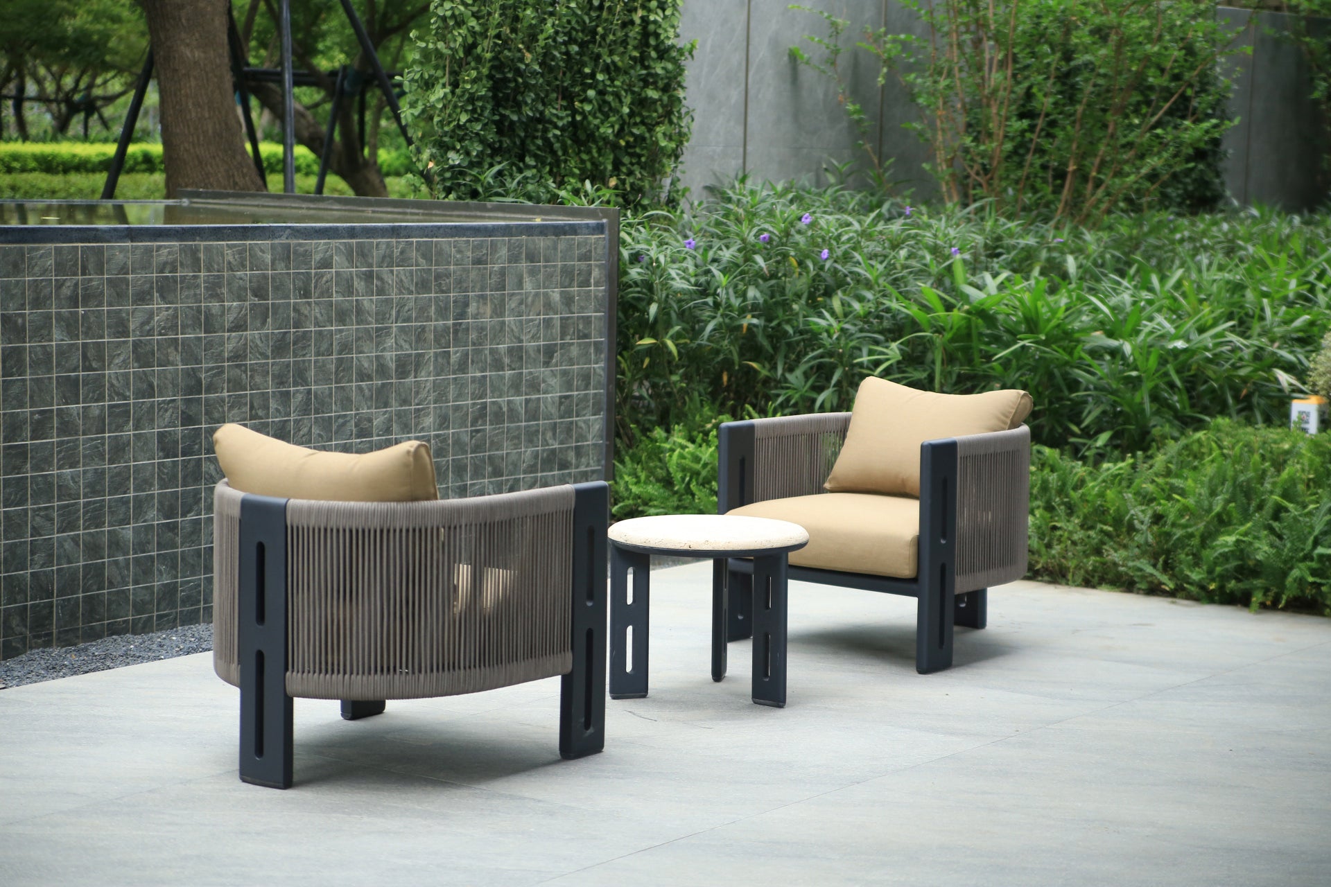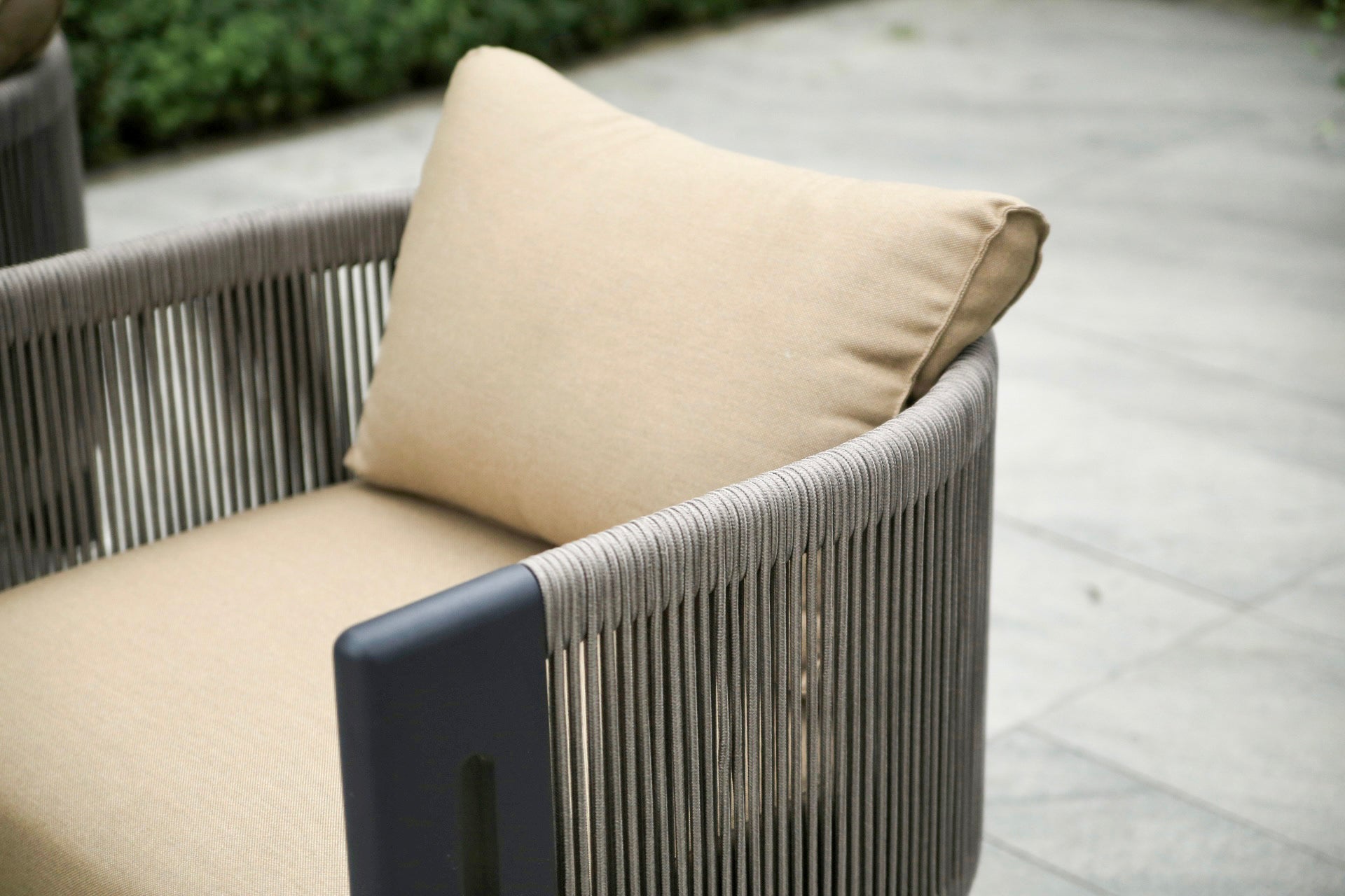 The Camano furniture set features a waterproof PVC core inside and a virgin polyester round rope outside, making it waterproof, highly sun-resistant, soft, and highly resilient. The weaving process makes the outdoor seating experience more breathable and comfortable. With a variety of colors to choose from, it is suitable for both indoor and outdoor use.