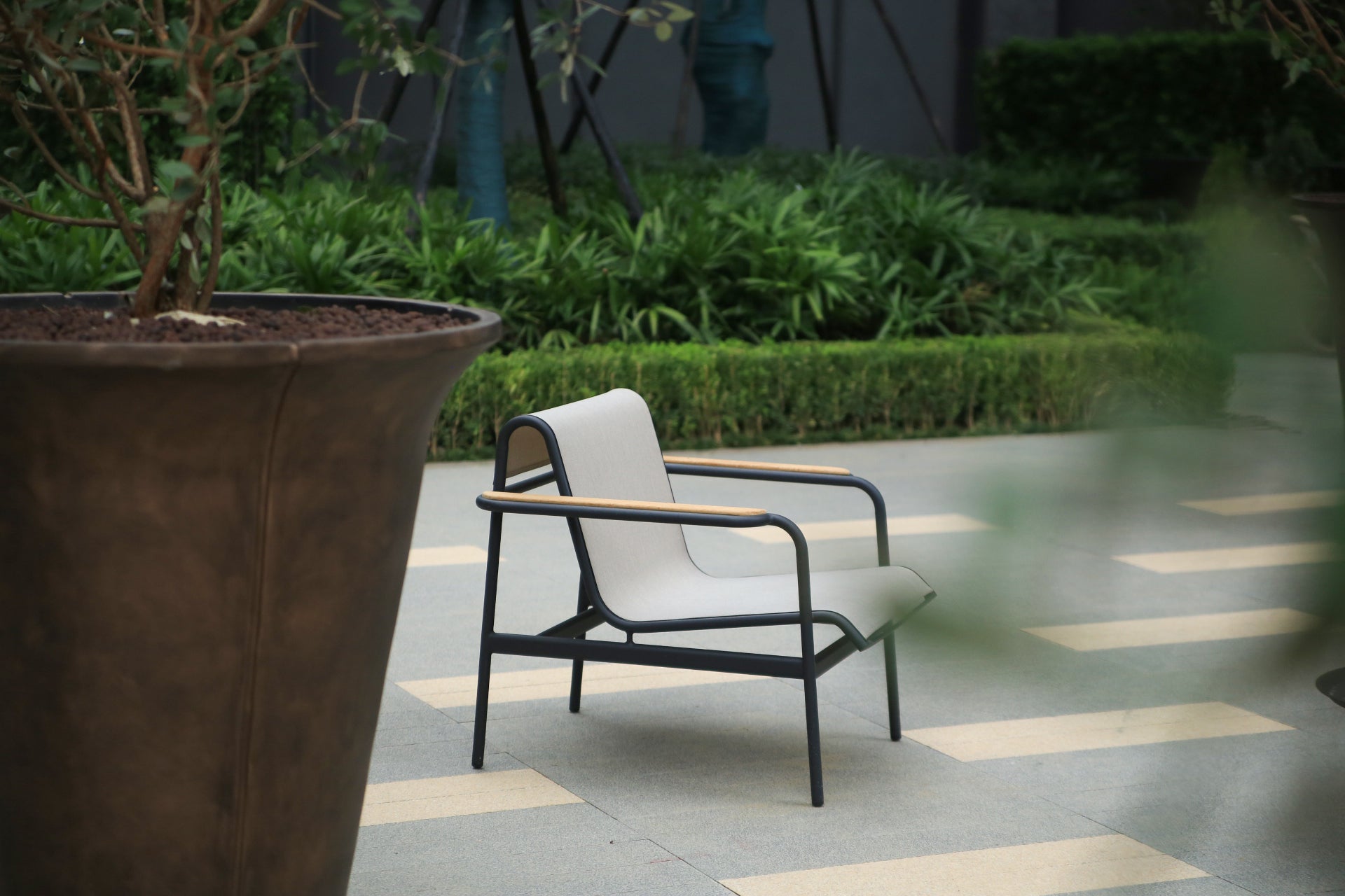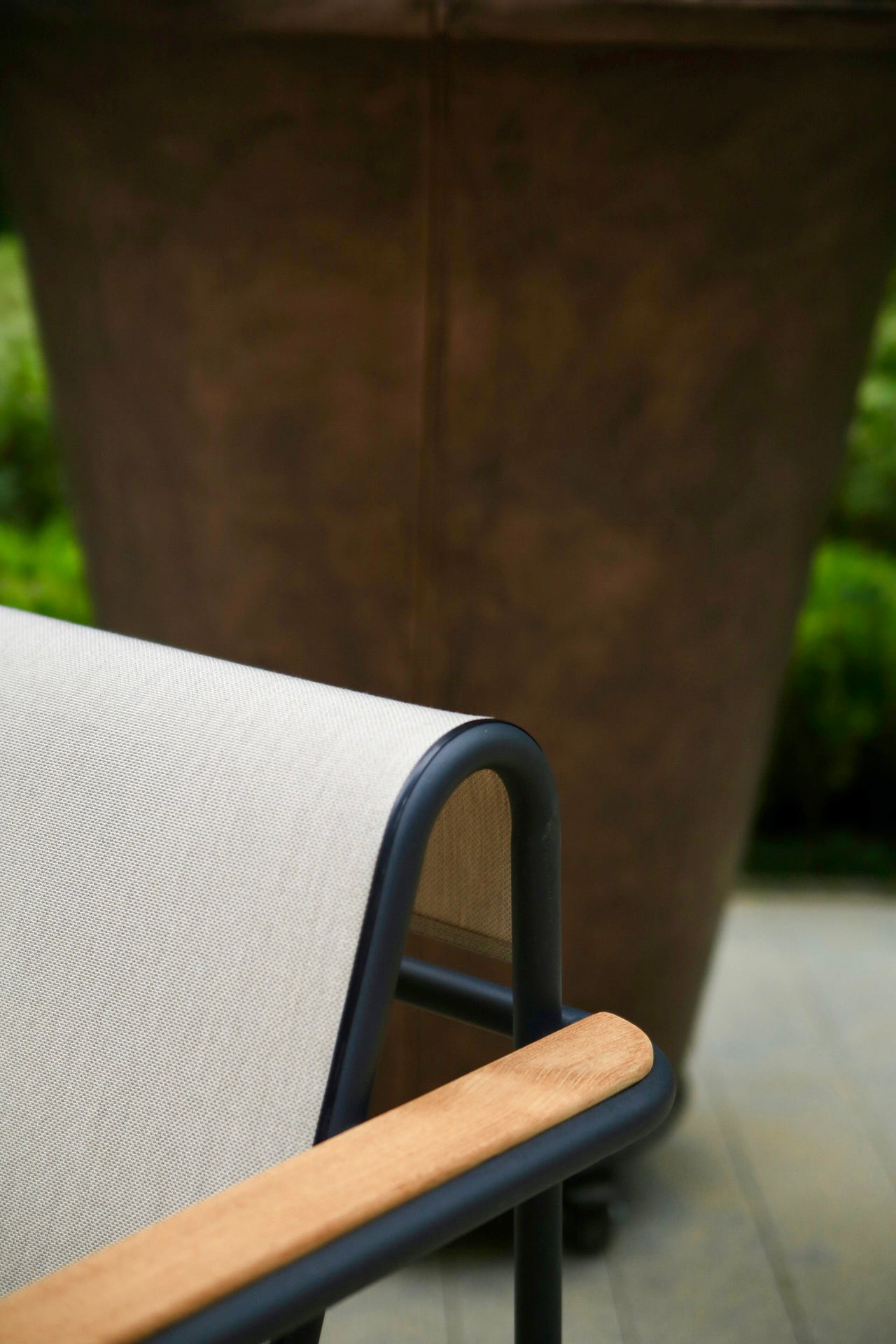 The L-shaped lounge chair features a support structure designed to accommodate the most relaxed sitting posture. The overall frame is made of lightweight yet sturdy aluminum alloy, which is rust-resistant and has a strong load-bearing capacity. The powder coating surface treatment provides both aesthetic appeal and excellent protection.