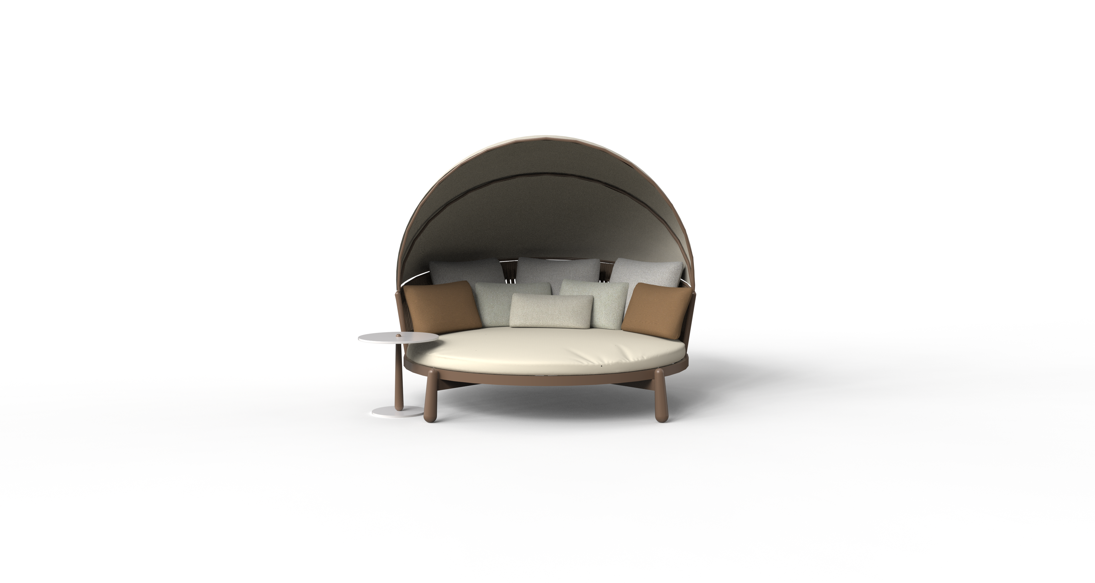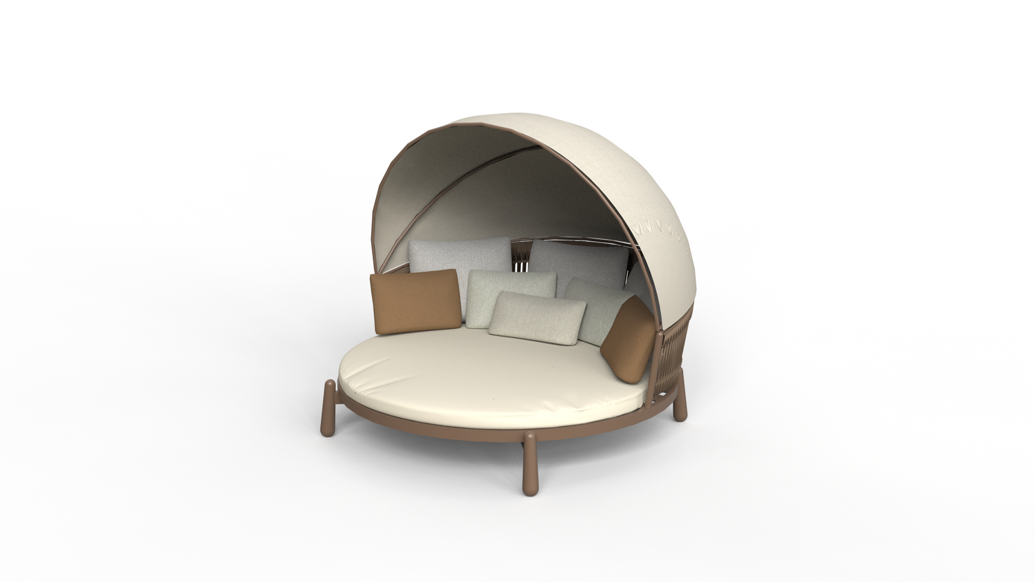 The daybed, designed with an adjustable canopy, offers a shaded, resort-like experience that’s perfect for lounging by the pool.