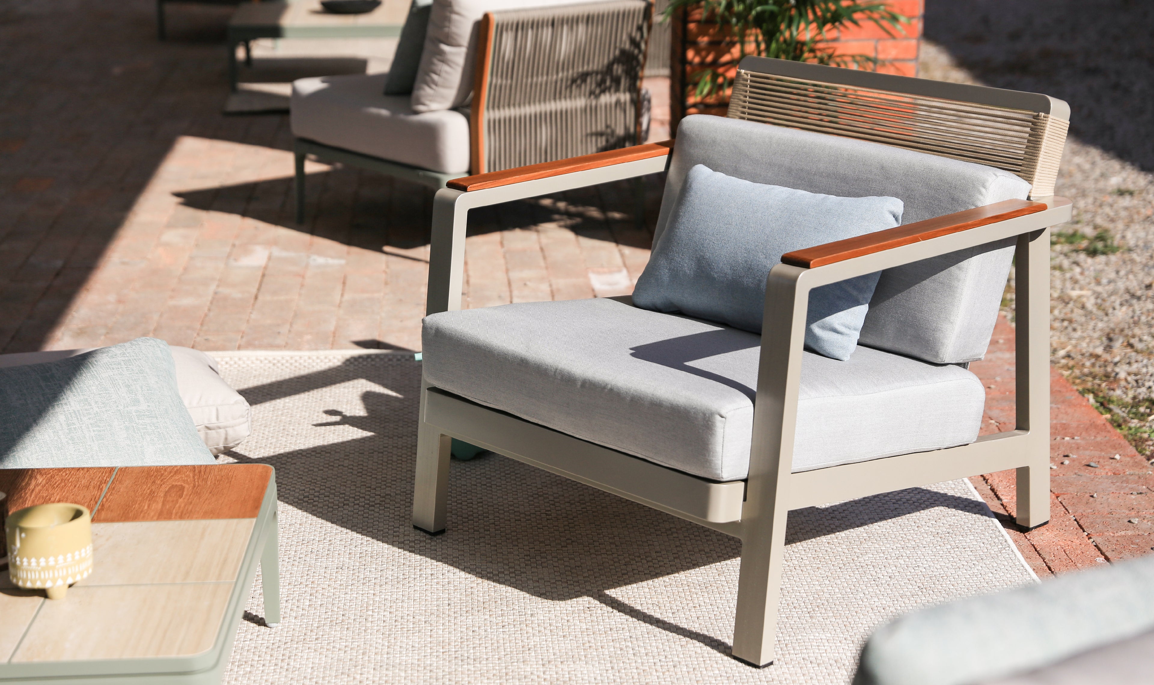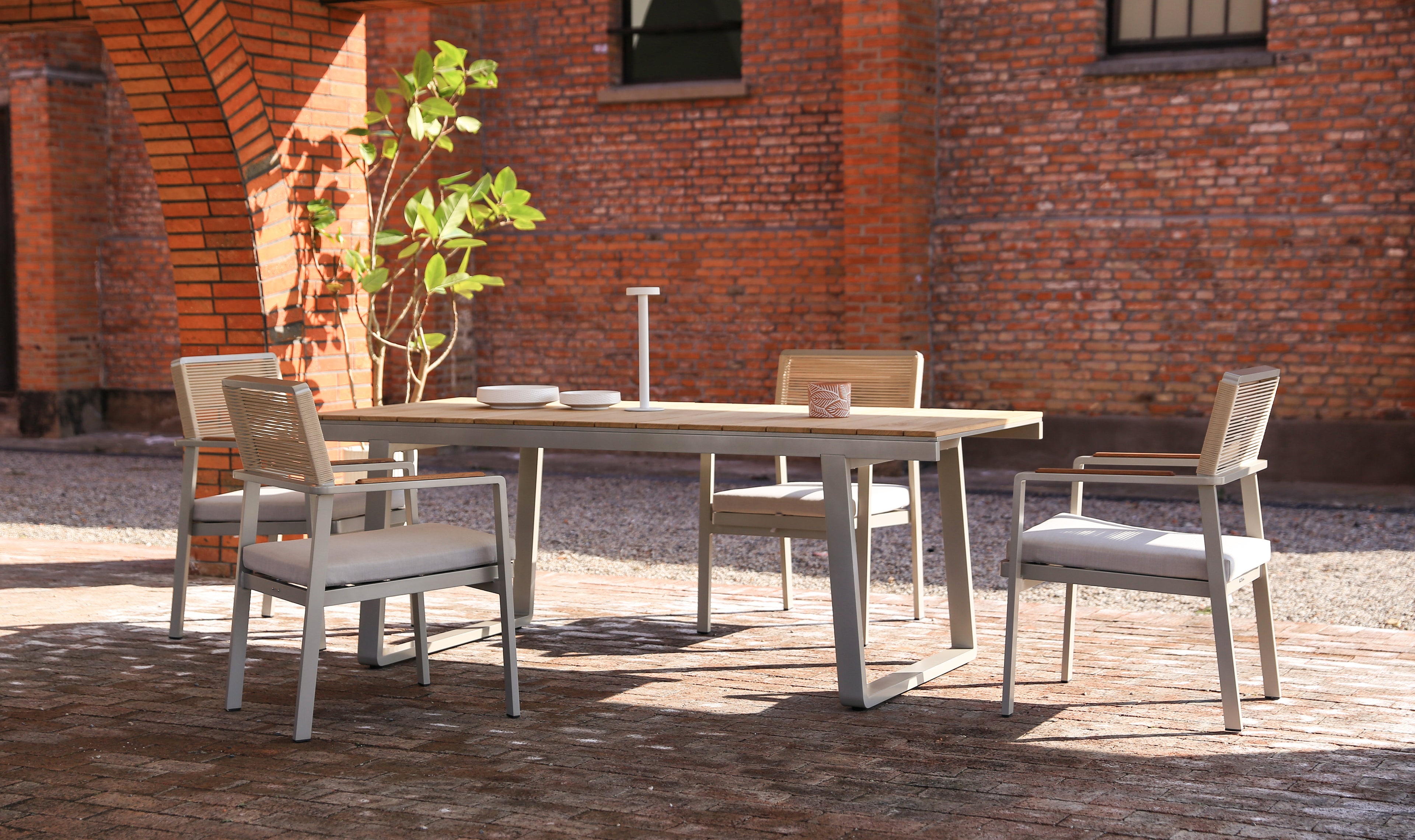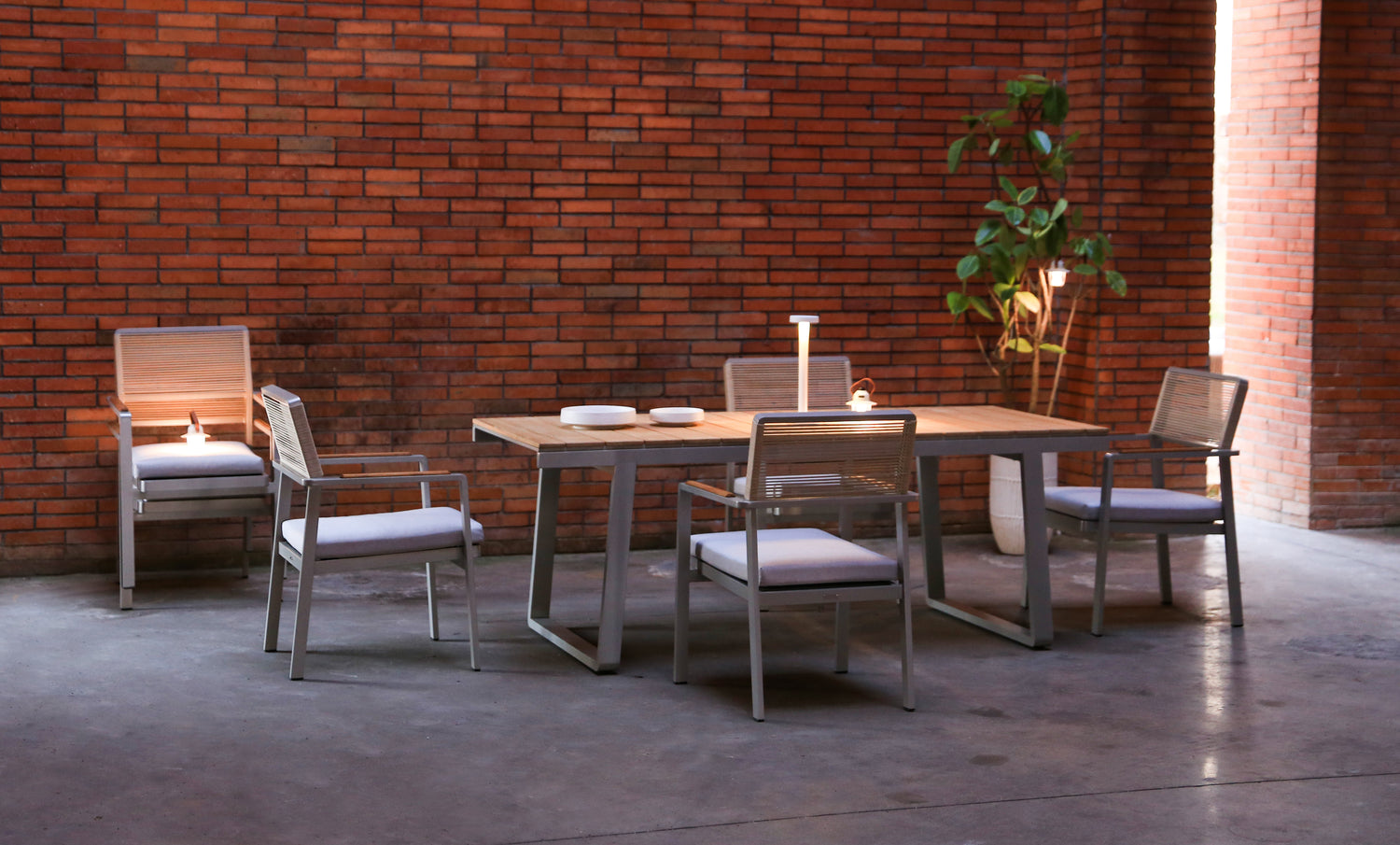 The backrest of the sofas and dining chairs is woven with Olefin core ropes, ensuring overall ventilation.
