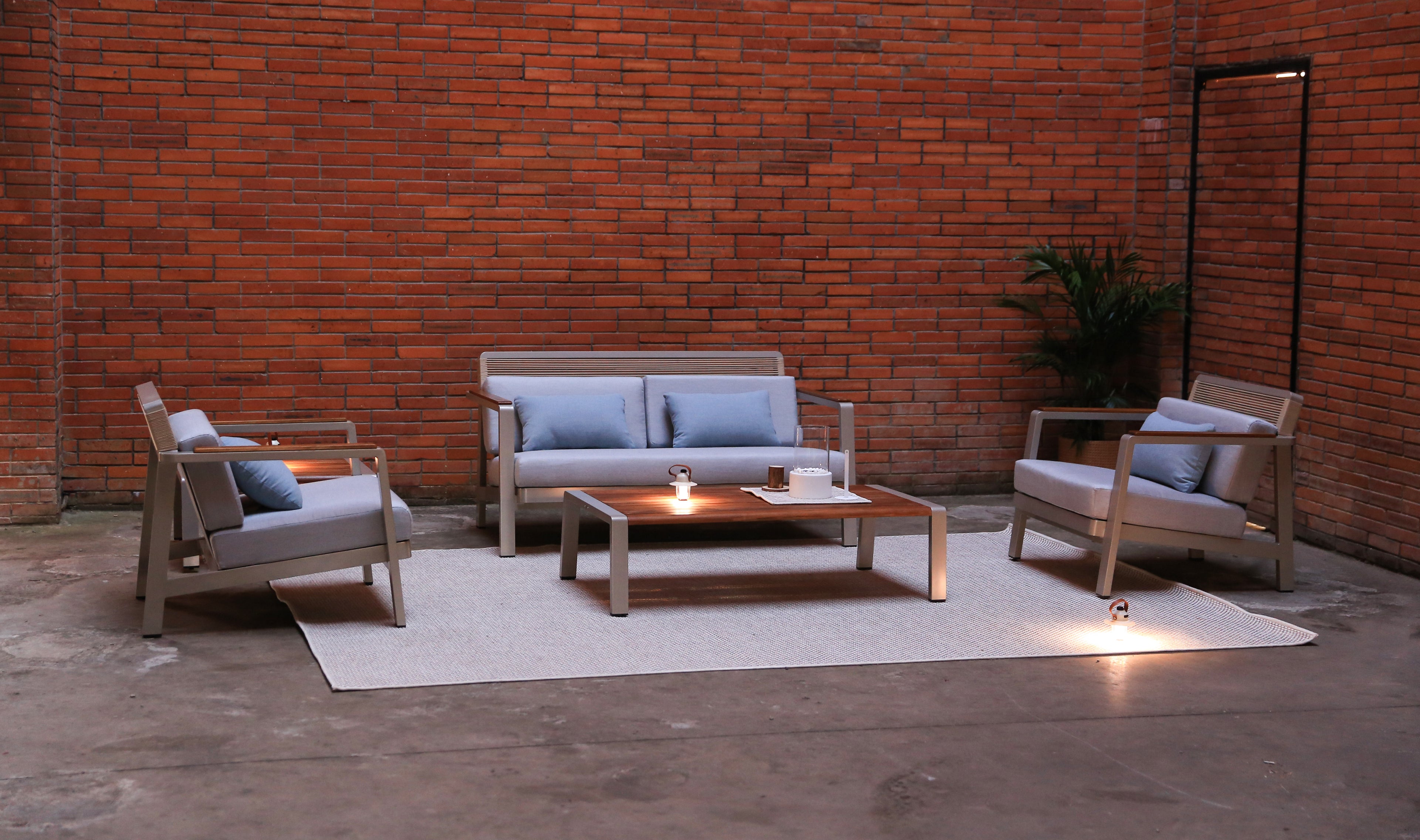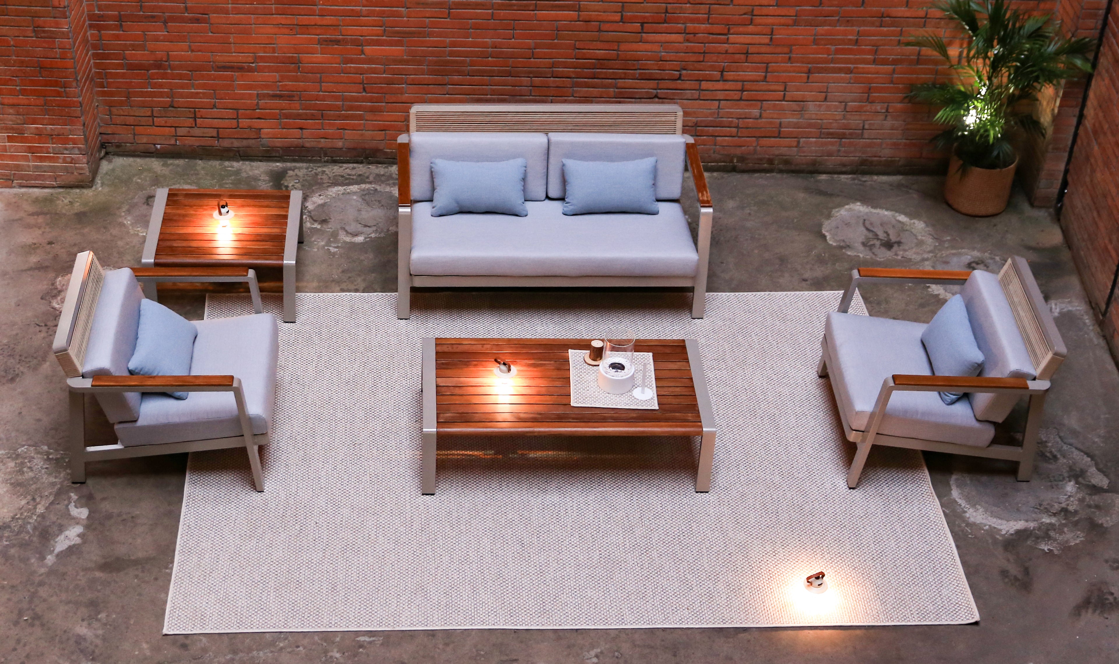 The overall design of the Mega Series is simple and elegant, with smooth lines, highlighting a sense of power.The frame is made of powder-coated aluminum alloy, which is sturdy and durable; the soft padding is made of outdoor fabric, which is waterproof, UV-resistant, and easy to clean; some products use Myanmar teak, which has a warm texture and is corrosion-resistant