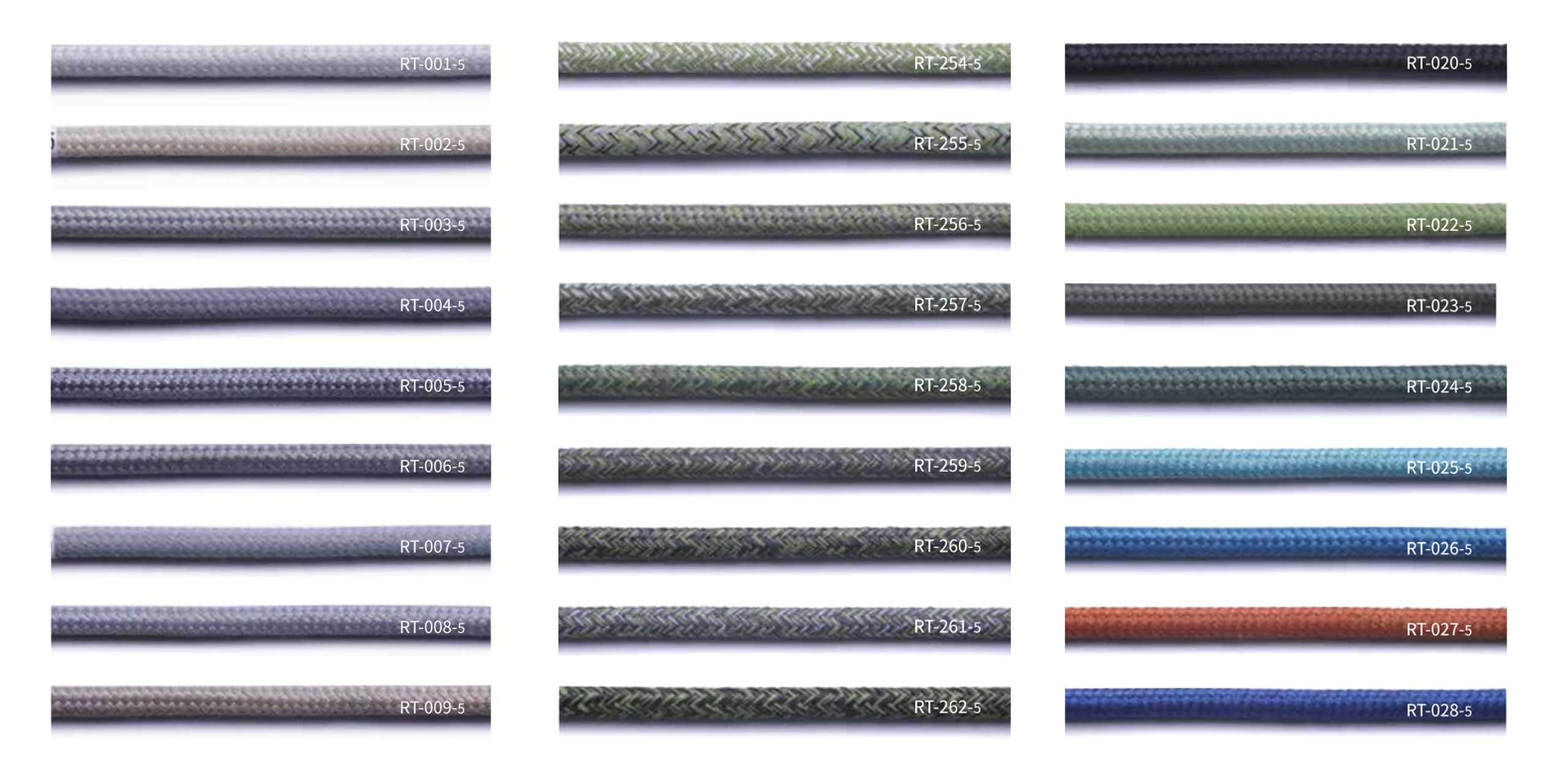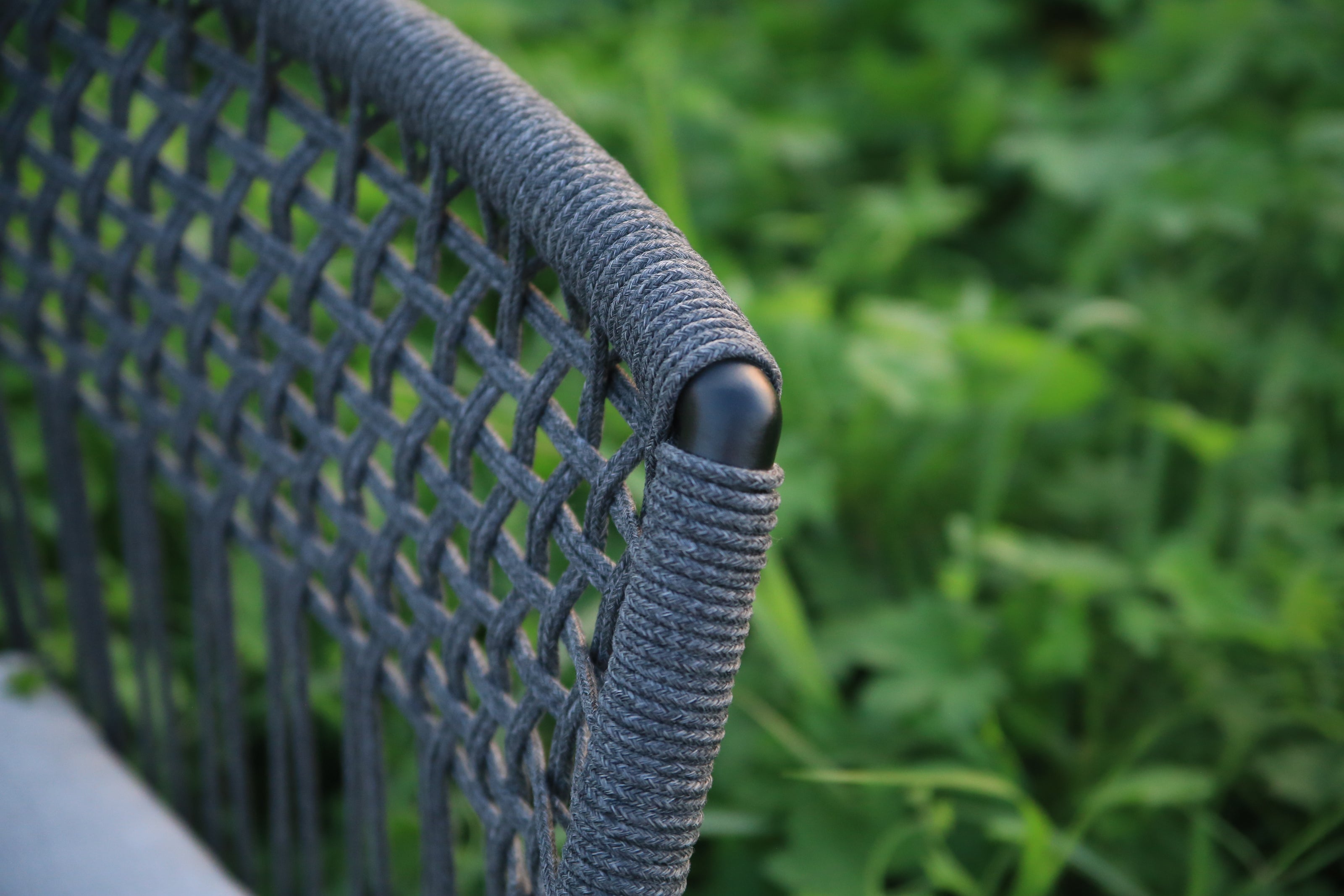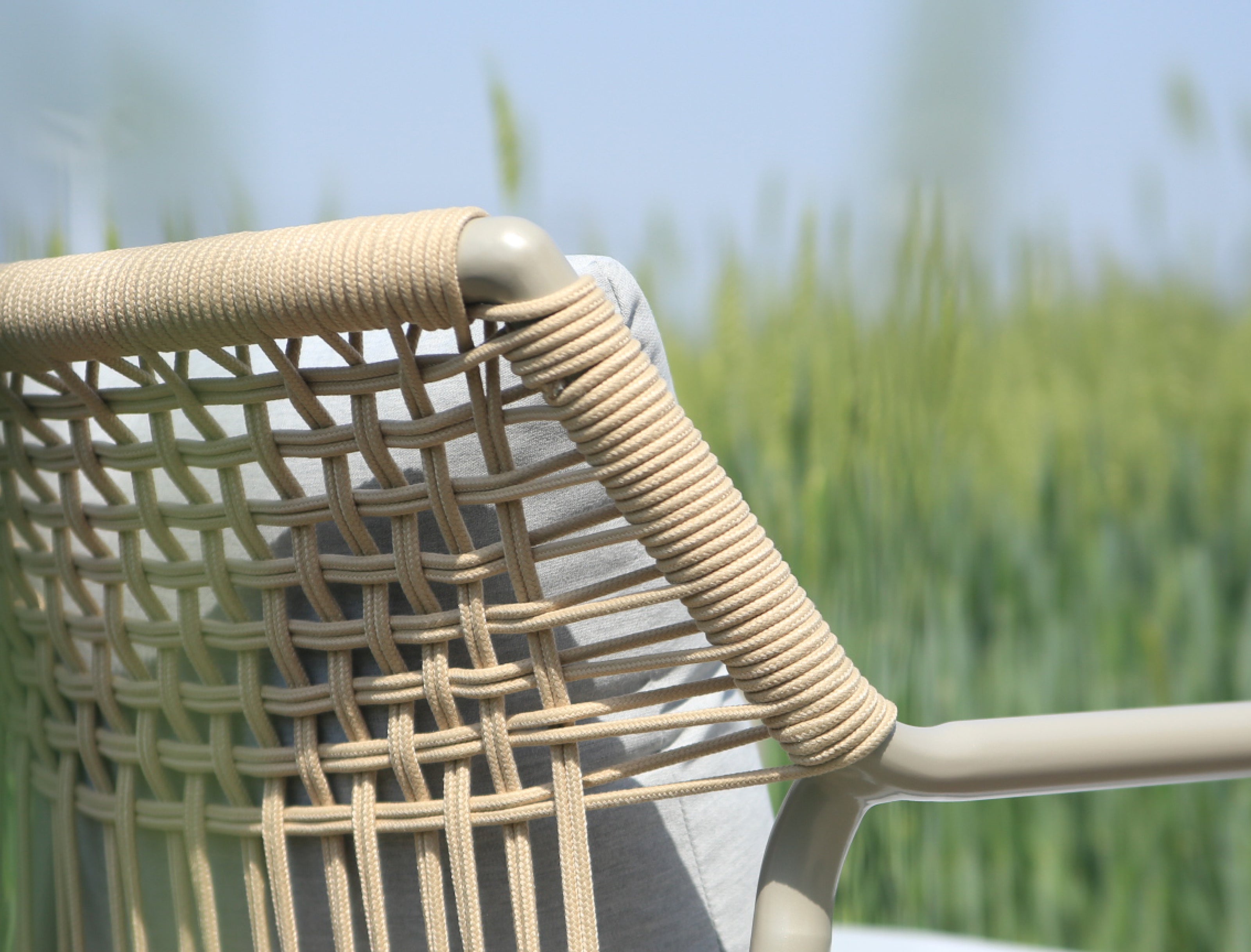 Rope, with waterproof PVC on the inside and raw polyester on the outside, with high light resistance, high color fastness, softness and high toughness. With a variety of color choices, it is one of the commonly used materials for outdoor furniture products.