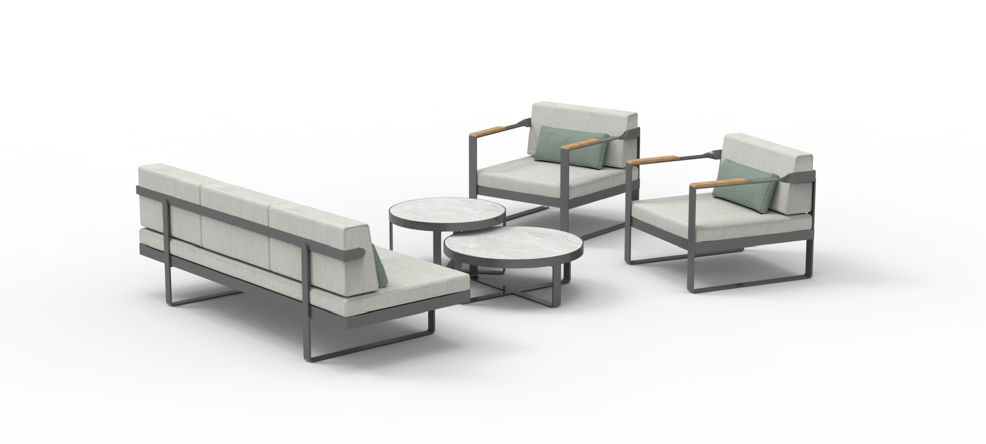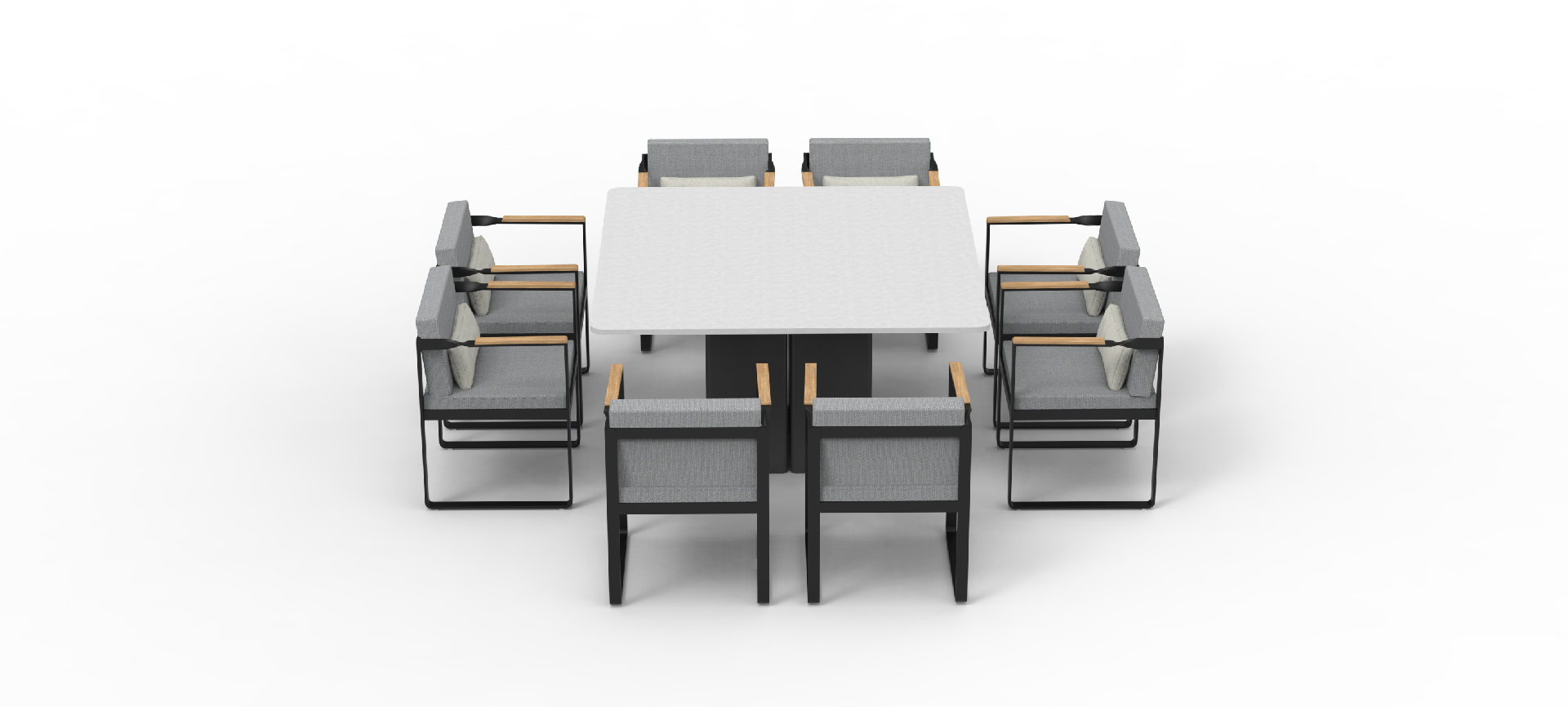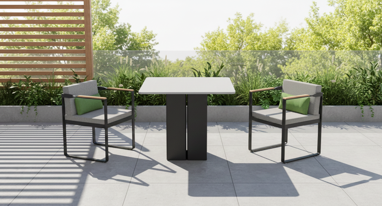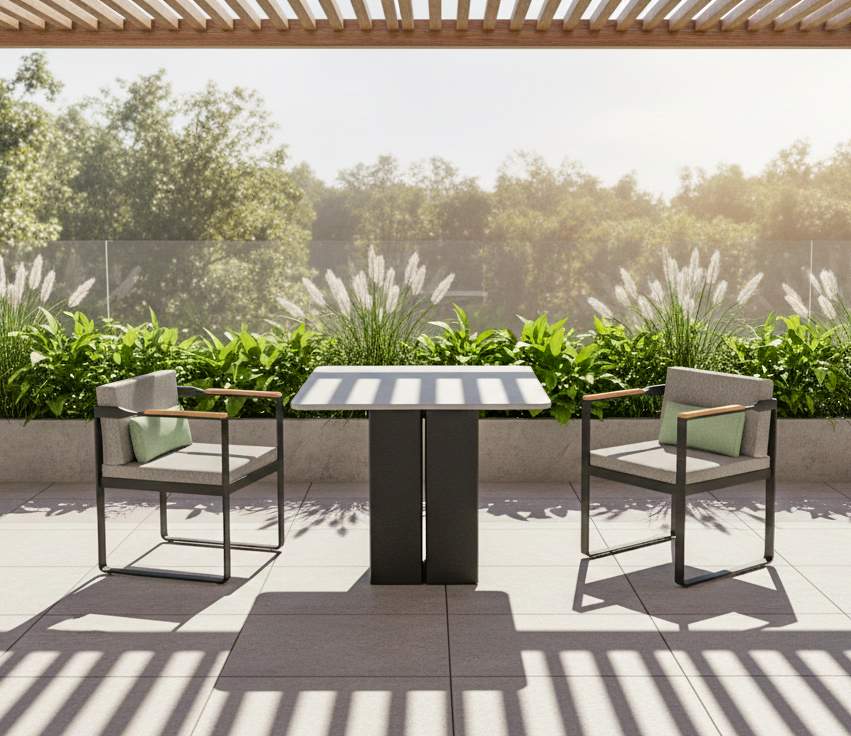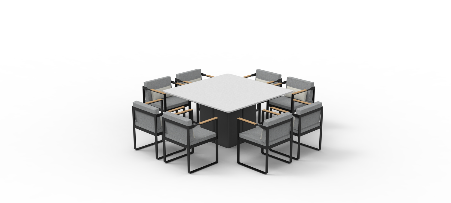 Twist is a range of furniture suitable for everyday outdoor life.The style is more modern, the tough lines and the design of the teak handrails more show the designer's mind.The standout feature of the Twist Series is the twisted arm design at the intersection of the armrest and backrest, which adds to the series' overall visual appeal without losing the aesthetic feeling.