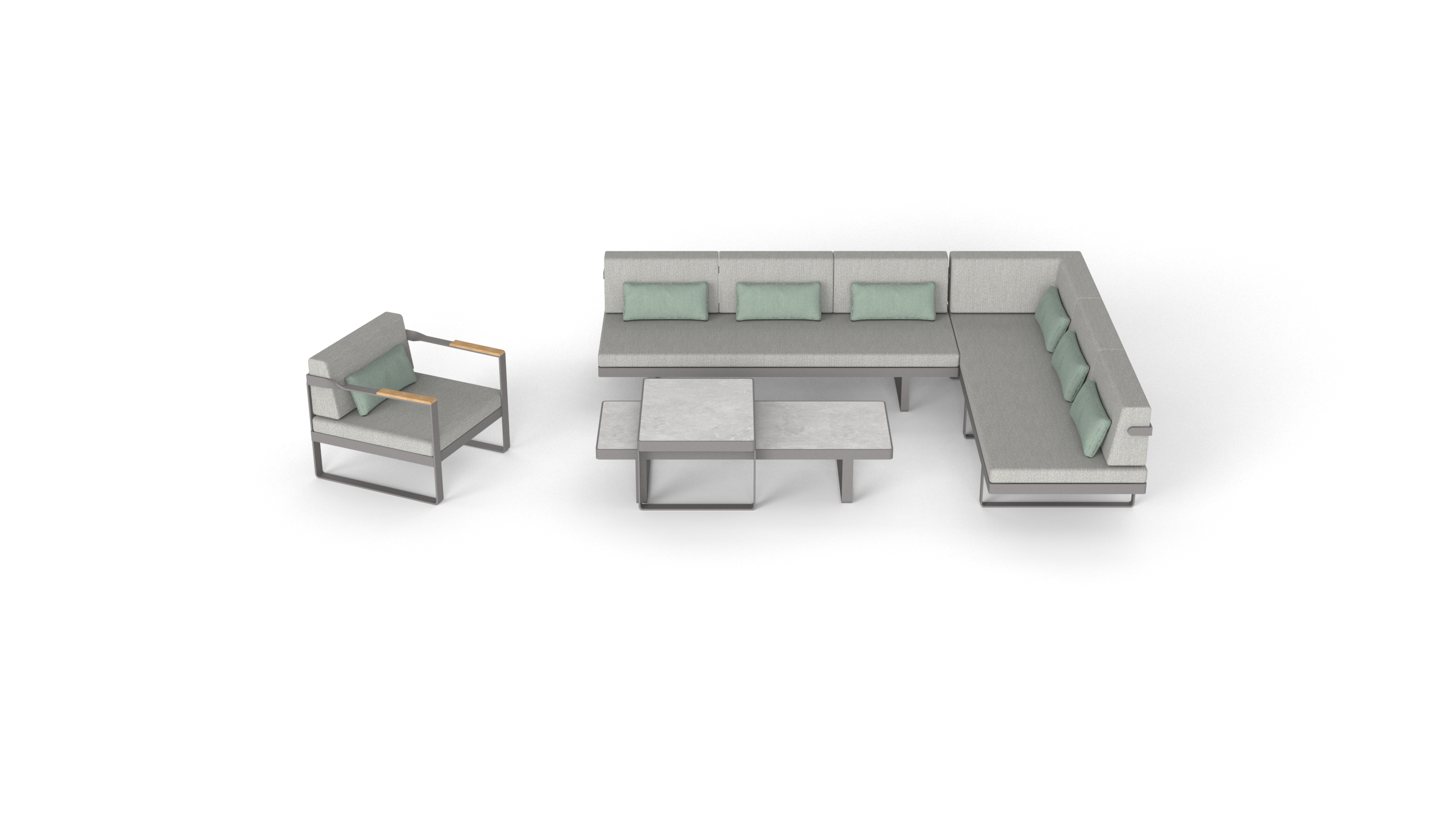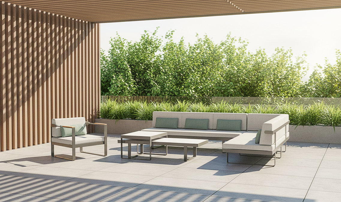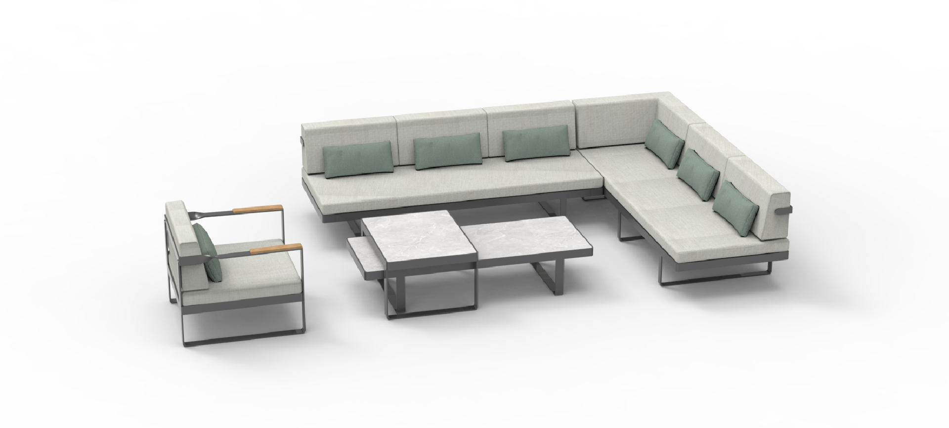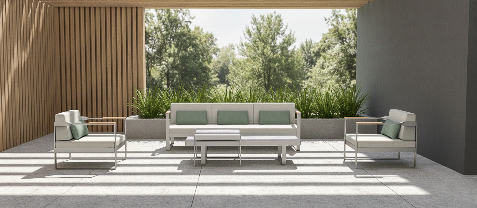Twist is a range of furniture suitable for everyday outdoor life.The style is more modern, the tough lines and the design of the teak handrails more show the designer's mind.The standout feature of the Twist Series is the twisted arm design at the intersection of the armrest and backrest, which adds to the series' overall visual appeal without losing the aesthetic feeling.