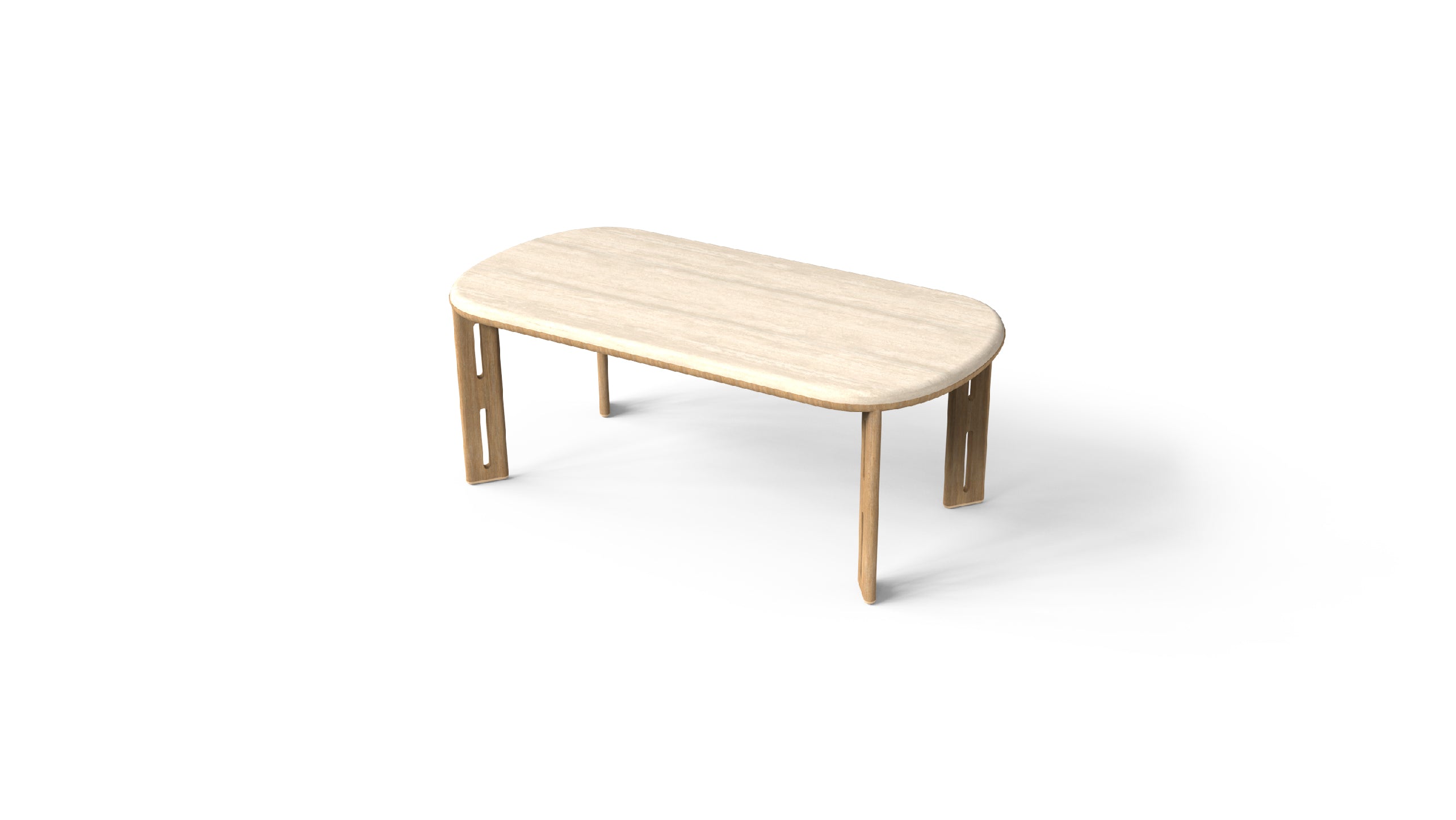 Generously cushioned seating provides a luxurious level of comfort, while the use of natural travertine stone introduces a timeless, earthy sophistication. The addition of round rope weaving adds a breezy, open feel, enhancing the collection’s outdoor character and sense of lightness.