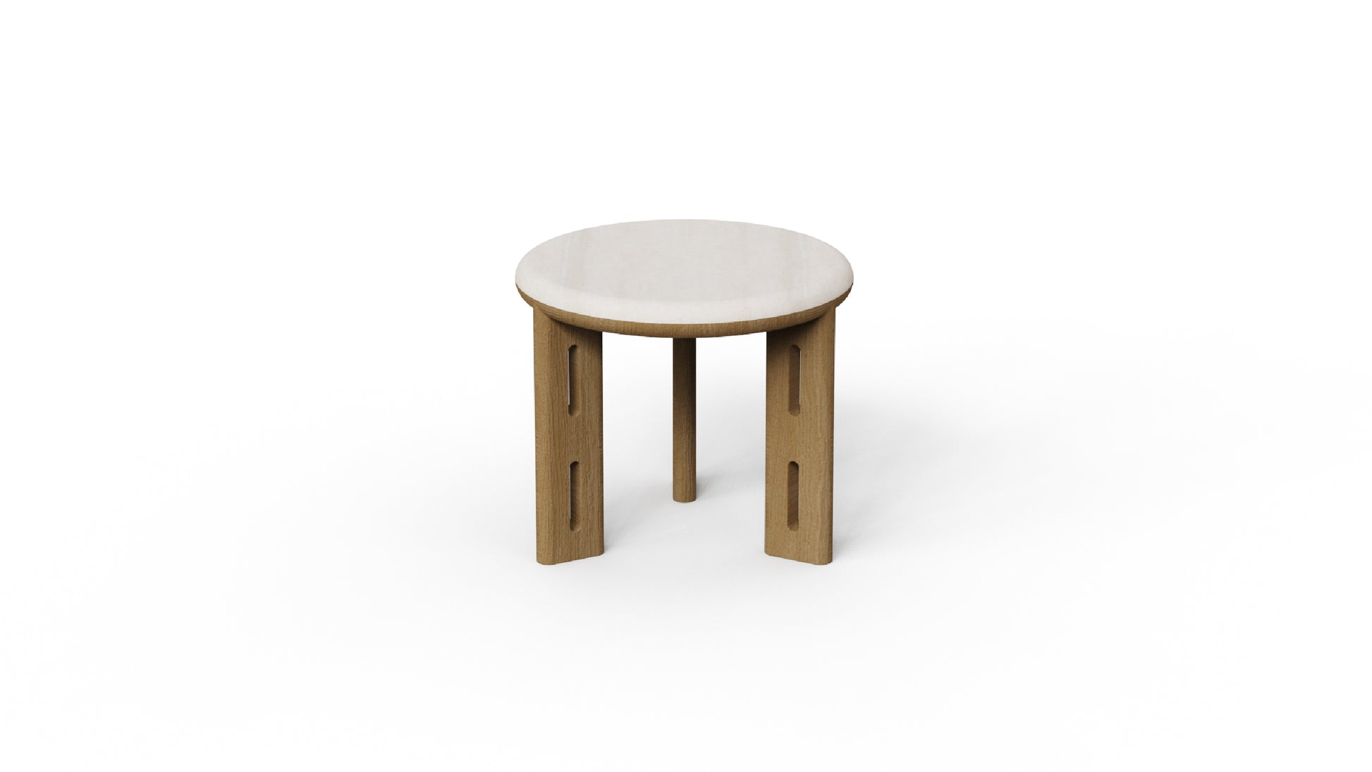 Generously cushioned seating provides a luxurious level of comfort, while the use of natural travertine stone introduces a timeless, earthy sophistication. The addition of round rope weaving adds a breezy, open feel, enhancing the collection’s outdoor character and sense of lightness.