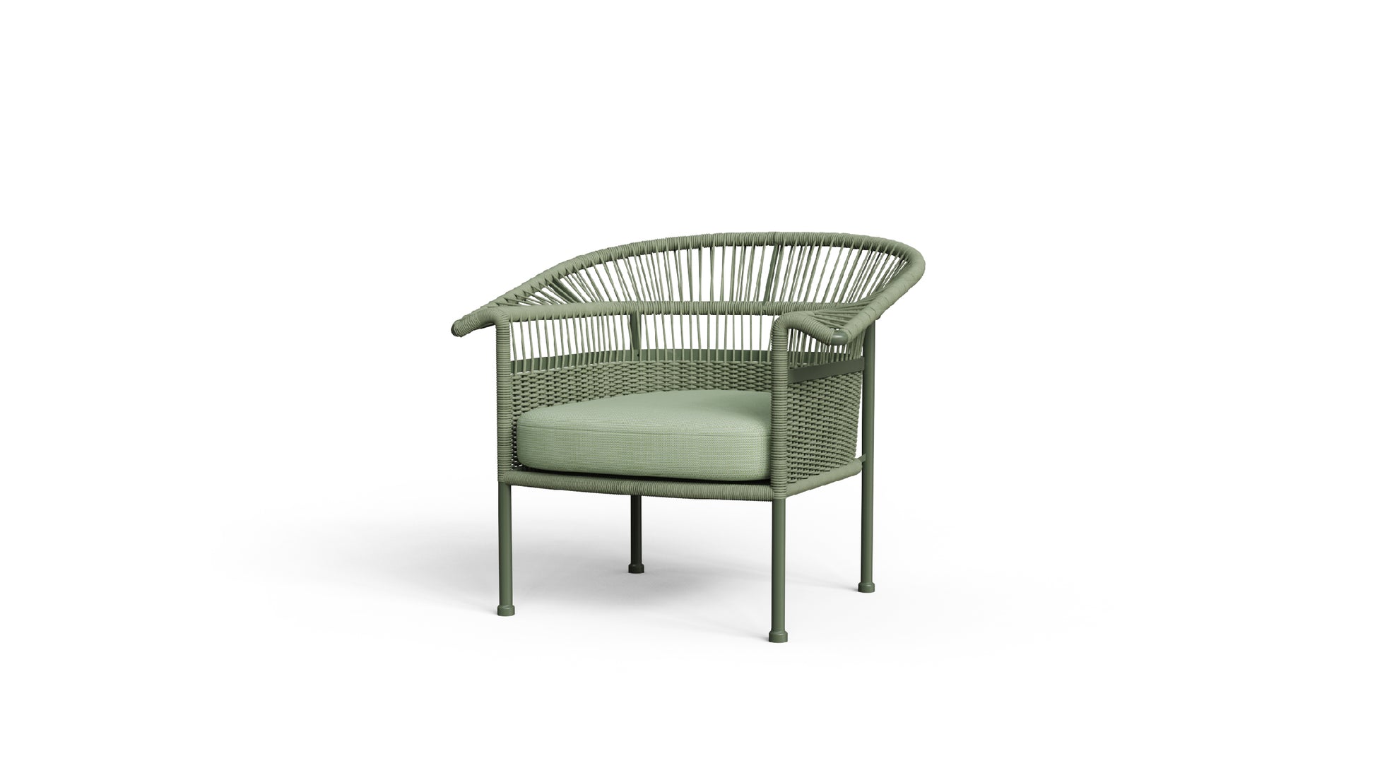 What sets COLLAR apart is its intricate use of round rope weaving throughout the entire collection. Each piece—especially the single lounge chair—features a combination of multiple weaving techniques. By varying the density of the weave, the design achieves a sophisticated sense of depth and rhythm, turning functional surfaces into expressive textures. This thoughtful manipulation of spacing not only enhances the visual appeal but also improves the structural support of the seat and backrest, providing comfort without compromise.