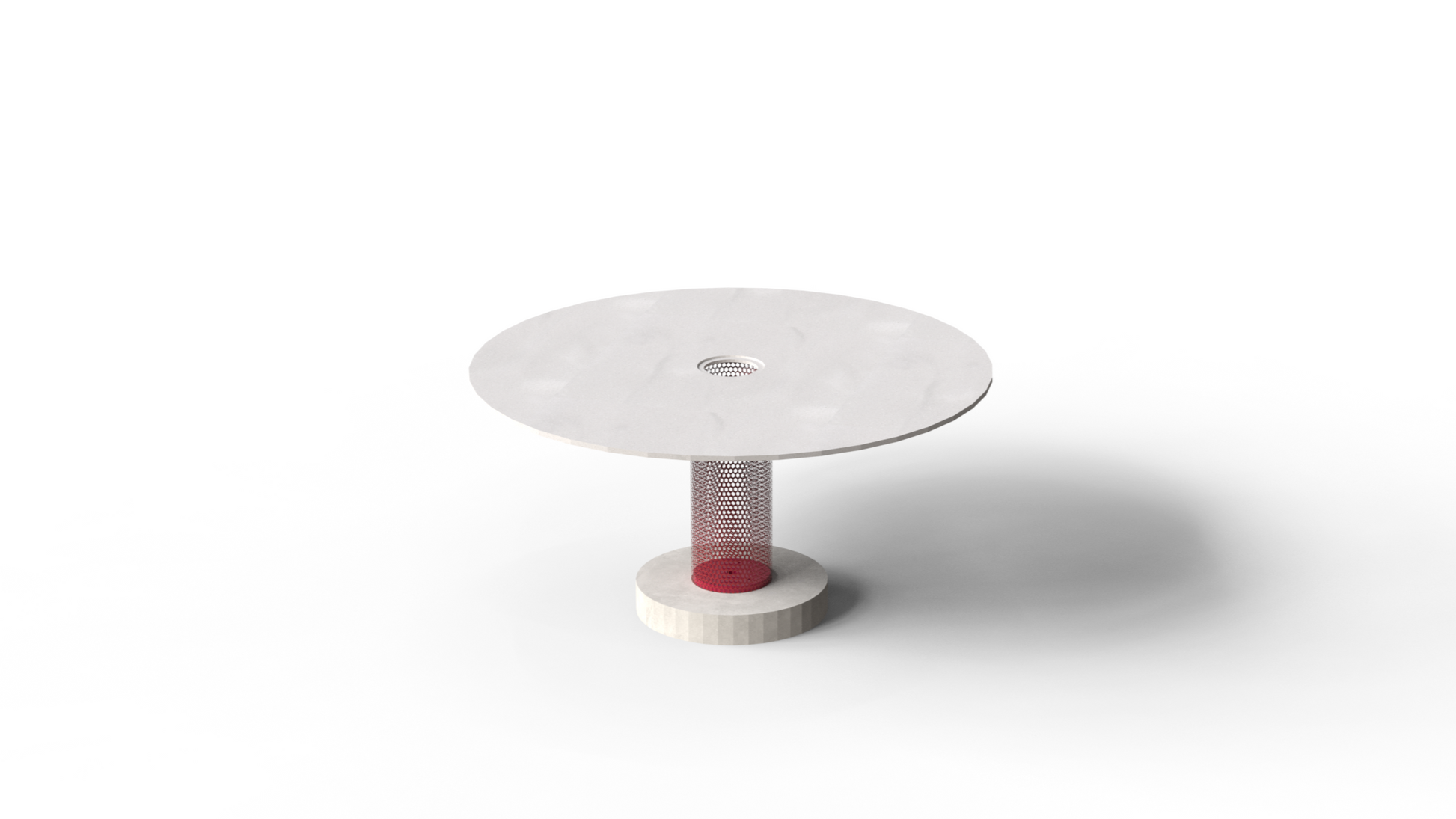 The dining tables and coffee tables are crafted with sculpted stainless steel columns, each intricately engraved to create a striking visual texture. By day, these columns exude a quiet, sophisticated elegance, but by night, they come to life with built-in solar-powered light modules. The lights illuminate the sculptural patterns, casting a mesmerizing glow and transforming the outdoor space into an enchanting setting.
