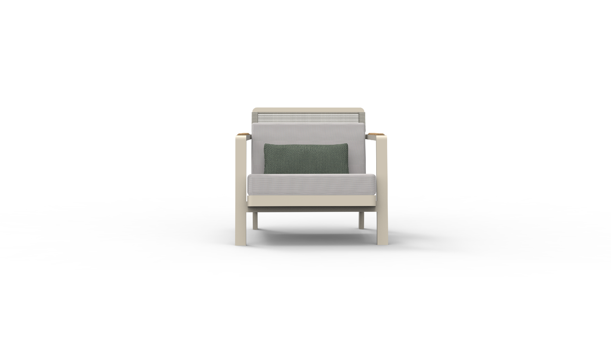 The backrest of the sofas and dining chairs is woven with Olefin core ropes, ensuring overall ventilation.The armrests of the sofas and dining chairs are equipped with Myanmar teak to enhance comfort and prevent burns from the hot metal armrests in summer.