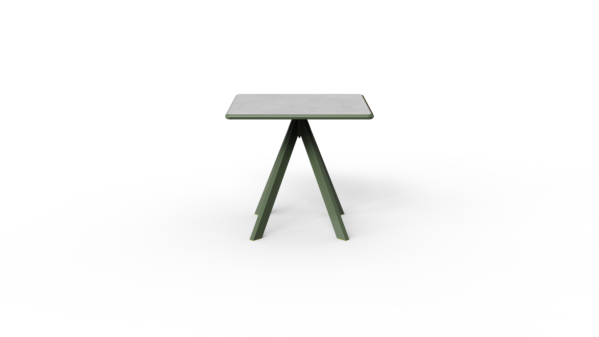 The dining table complements the chair’s form with a refined, sturdy frame and offers a range of customizable tabletop options—including slatted teak, aluminum panels, or modern stone slabs—to suit different design themes and performance needs. The clean silhouette and neutral tones allow it to integrate harmoniously into diverse settings.