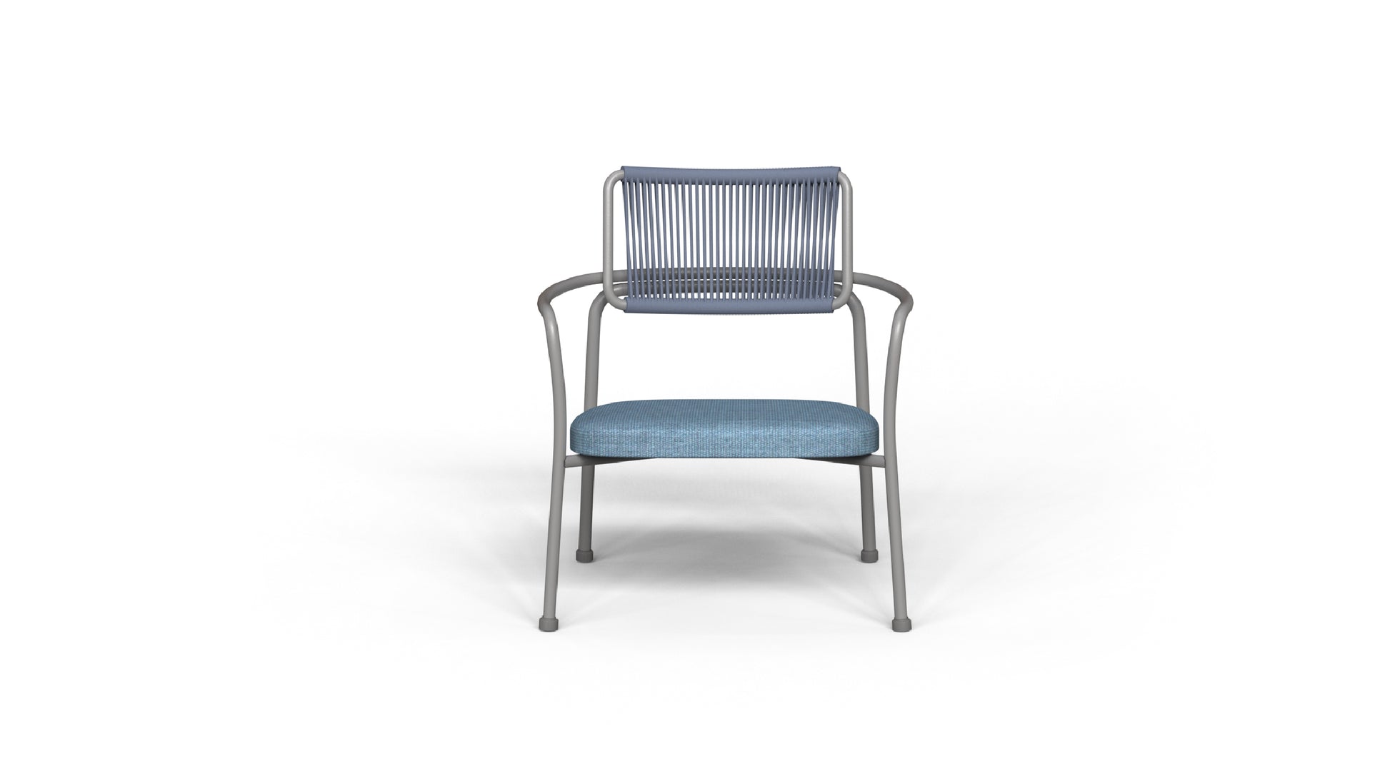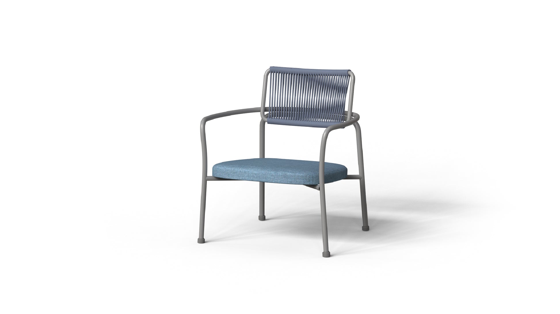 - The lounge chair is designed with an emphasis on relaxation, featuring a gently curved backrest and a spacious, cushioned seating area.