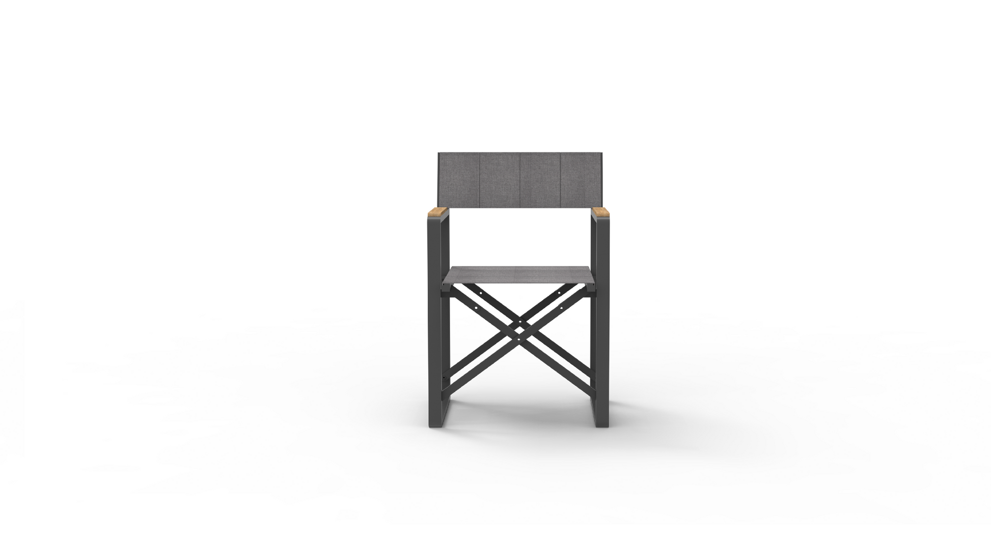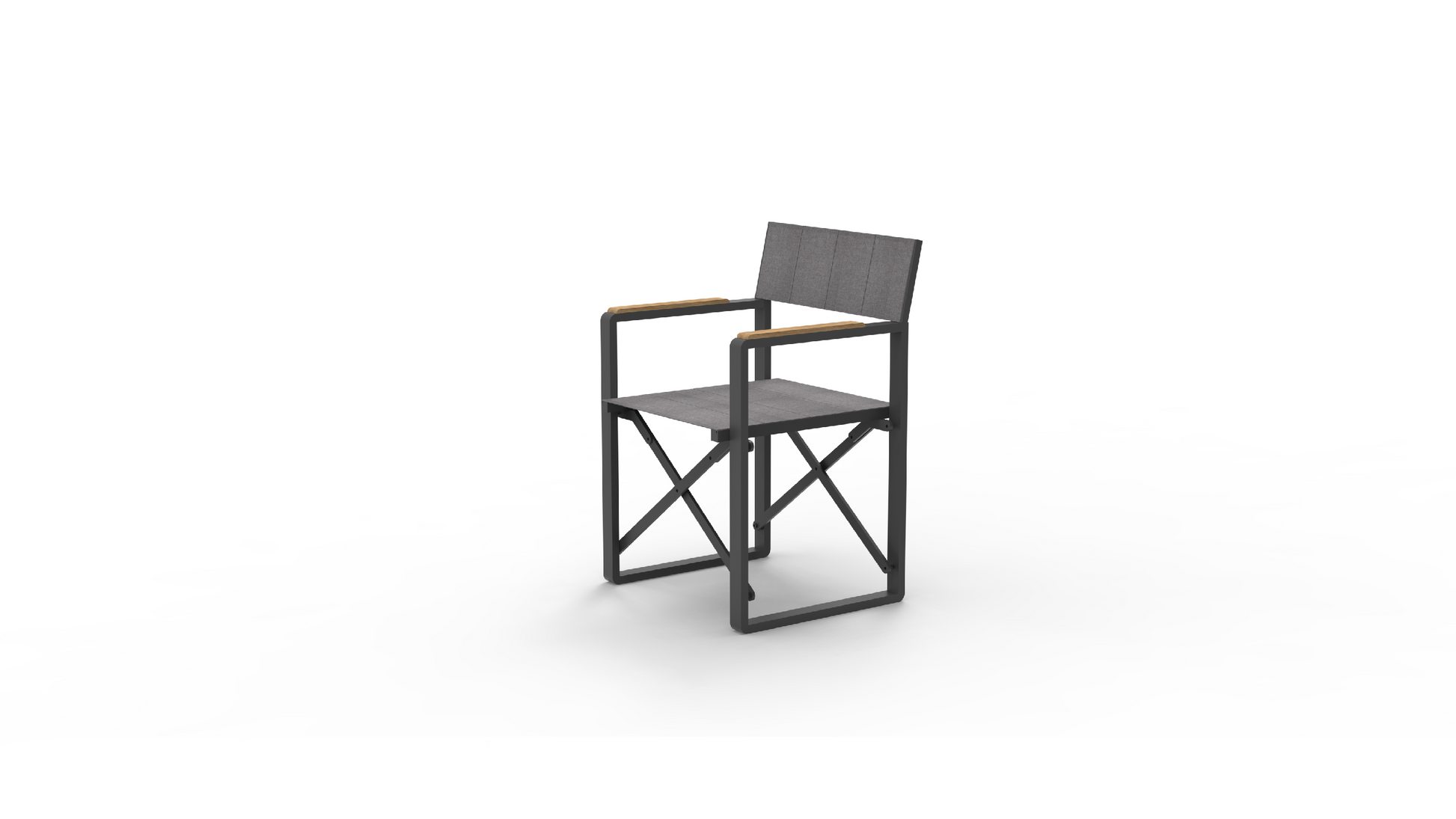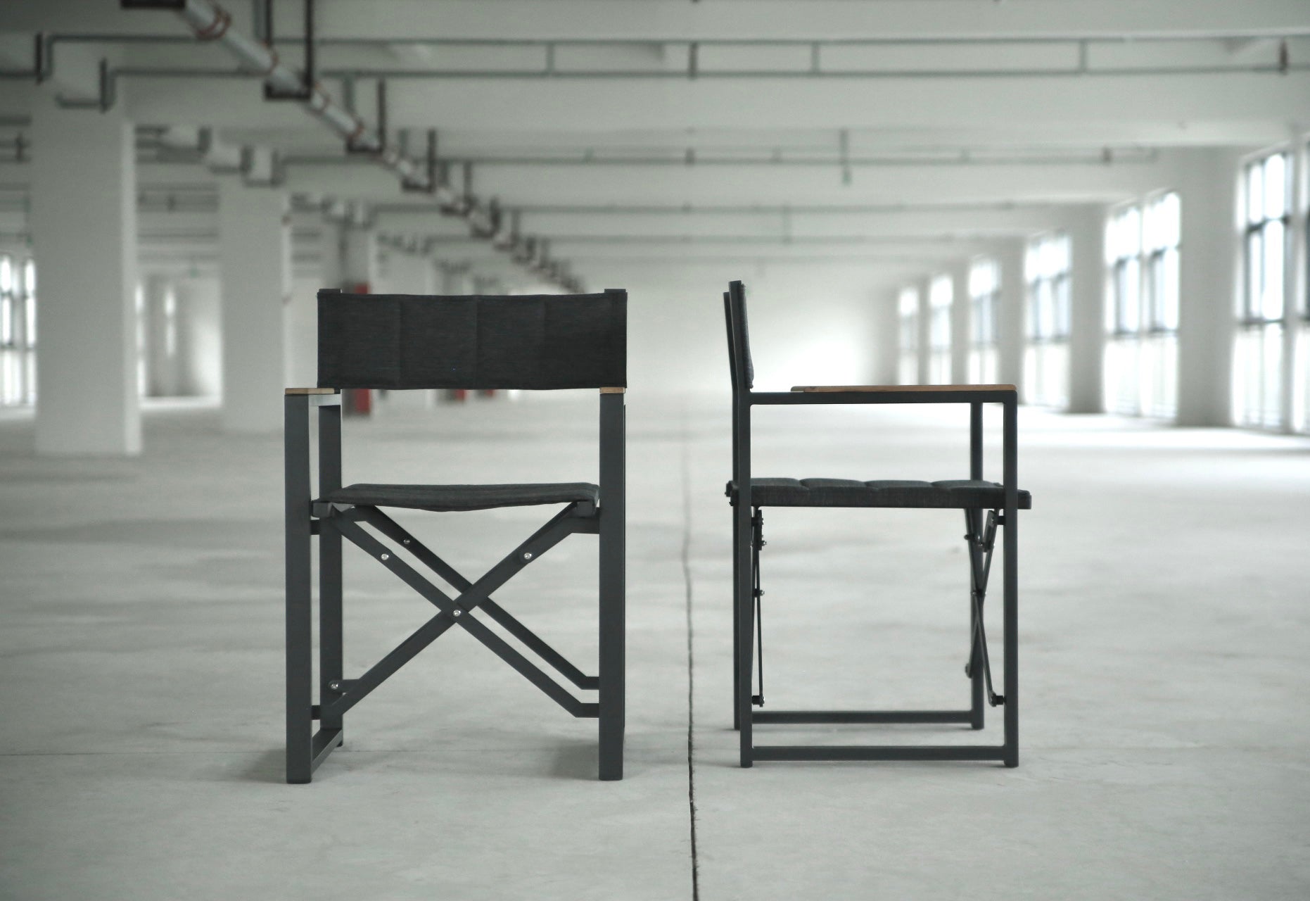 The Z-X Director Chair is designed to provide a compact and durable outdoor seating solution that is easy to fold and carry, suitable for various outdoor settings. Its unique construction is inspired by the intersection of two Z-shaped armrest side panels, forming an X-shaped configuration when fully unfolded, hence the name Z-X.
