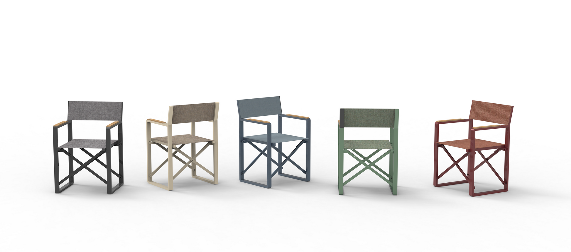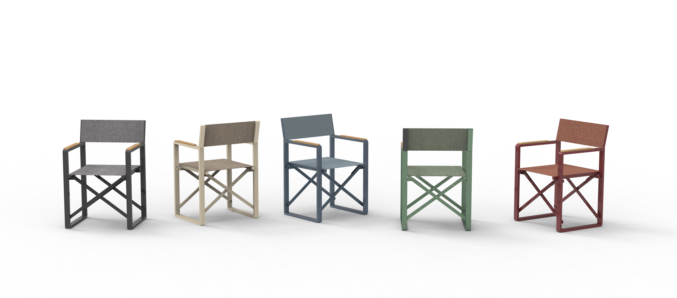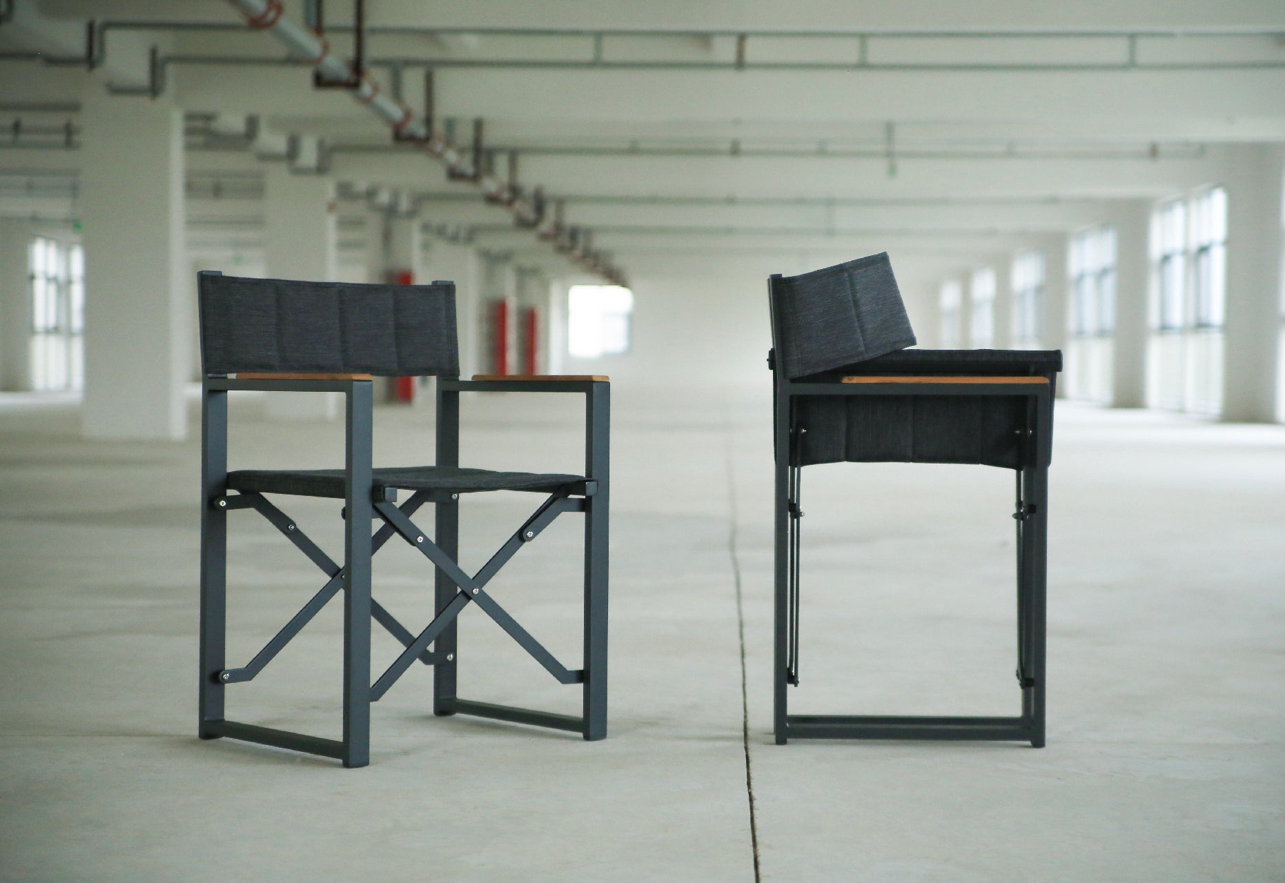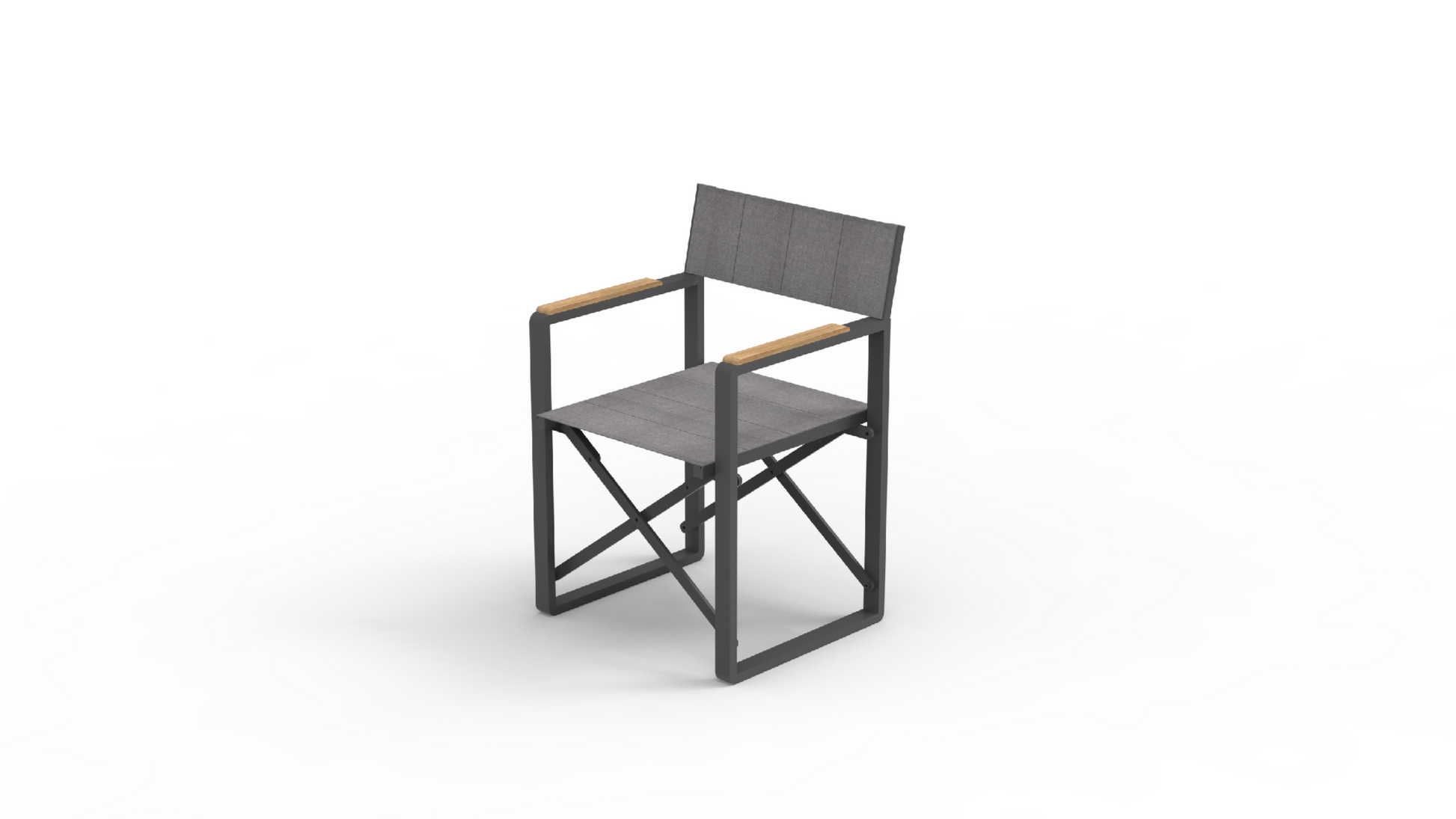 The Z-X Director Chair is designed to provide a compact and durable outdoor seating solution that is easy to fold and carry, suitable for various outdoor settings. Its unique construction is inspired by the intersection of two Z-shaped armrest side panels, forming an X-shaped configuration when fully unfolded, hence the name Z-X.
